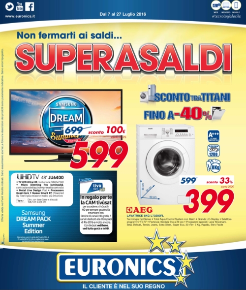 Euronics lancia il nuovo volantino, con all'interno tante e interessanti occasioni su numerose categorie merceologiche; a partire da un'ampia gamma di televisori di ultima generazione, smartphone delle migliori marche, wearable e accessori per tutti i gusti e le esigenze. Molto completa anche la selezione di prodotti per la casa, varie le promozioni sull'Home Entertainment, così come su PC e device, tablet e multifunzione.