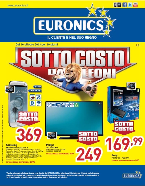 Da giovedì 10 ottobre, per dieci giorni consecutivi, tutti coloro che vorranno effettuare acquisti tecnologici potranno recarsi negli oltre 250 negozi Euronics di Italia e beneficiare della promozione “Sottocosto da leoni”, che coinvolge tutte le categorie merceologiche e i migliori brand del settore.