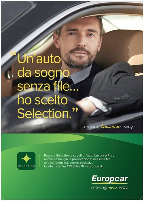 Il pay off del brand, 'Moving Your Way', si declina in modo personale e orginale…Concepita dall’agenzia Rosapark Advertising, la campagna fa leva dal punto di vista creativo sul pay off del brand 'Moving Your Way', riformulandolo grazie all’introduzione di alcuni nomi propri: un modo fresco e coinvolgente per evidenziare la volontà di Europcar di offrire prodotti e servizI che vadano incontro alle continue evoluzioni dei bisogni e delle
