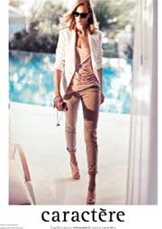 La famosa top model, spiega l'azienda in una nota stampa, esprime alla perfezione il ruolo di donna a cui Caractère si ispira: una donna contemporanea e cosmopolita, dalla femminilità elegante e raffinata, alla ricerca di uno stile distintivo ma sempre equilibrato. Con Eva Riccobono, Caractère prosegue il percorso dedicato alle “testimonial di carattere” che ha visto negli anni il marchio rappresentato dalle top model Inés Sastre, Carla Bruni, Valeria Mazza e Helena Christensen.La top model è protagonista della campagna stampa realizzata dal fotografo milanese Stefano Galuzzi che verrà pianificata sulle più importanti testate moda a partire da febbraio 2012.