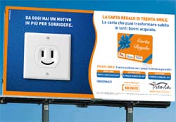 “Da oggi hai un motivo in più per sorridere: la Carta Regalo di Trenta Smile!". É questo il leit motiv della campagna di Expansion Group per il lancio della Carta Regalo la nuova promozione che Trenta, azienda del Gruppo Dolomiti Energia, ha varato a sostegno di Trenta Smile, "l'unica bolletta con i prezzi in discesa garantiti".Fino alla scadenza della promozione infatti (15 luglio 2013), chiunque attiverà un contratto con Trenta Smile, oltre ai vantaggi propri della formula (prezzo subito bloccato; meno 5% il secondo anno; meno 10% il terzo sul costo dell'energia), riceverà una Carta Regalo trasformabile in buoni acquisto spendibili, senza limiti di tempo, presso uno dei punti vendita selezionati Poli/Regina.