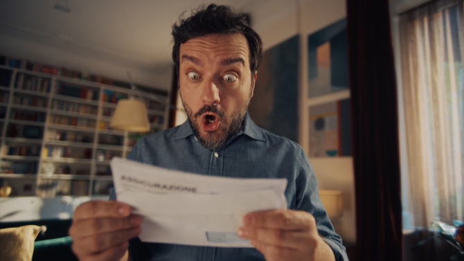 La scena si svolge nel soggiorno di casa di una famiglia, il protagonista apre una lettera con la proposta di rinnovo della polizza Rc auto. Le tariffe elevate e un aumento inaspettato dei costi lo accendono così tanto che sta per scappargli una parolaccia, ma proprio in quel momento incrocia lo sguardo della figlioletta e… va a pagare! è tutto quello che può dire.