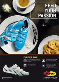 La campagna multisoggetto, prevalentemente dedicata al mercato estero, 'porta in tavola' i prodotti Northwave insieme a pasta, pizza, caffè, tipicamente riconosciuti all’estero come pietanze italianissime. Il claim 'Feed your Passion' esprime il fulcro della comunicazione che associa la necessità di alimentarsi alla necessità di alimentare la passione con ottimi prodotti nati dalla tradizione, manifatturiera,