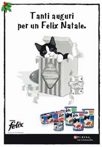 Felix, il simpatico gatto bianco e nero che identifica il brand di Purina, torna in comunicazione con una speciale campagna stampa per augurare un buon Natale e un felice anno nuovo. Felix, la linea di alimenti umidi per gatti, da venerdì 11 al 31 dicembre sarà, infatti, protagonista di una nuova campagna dedicata al Natale e all’arrivo del nuovo anno, composta da diversi soggetti e pianificata sui principali quotidiani e periodici nazionali.
