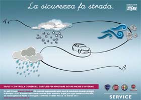 Fiat Group Automobiles promuove i servizi Safety Control e Winter Check-up con una campagna che attraverso le voci di una bambina trasforma le intemperie invernali in un mondo divertente con cui giocare. La campagna, on air dal 14 novembre, è declinata sui mezzi stampa e radio e sul sito www.lasicurezzafastrada.it.
