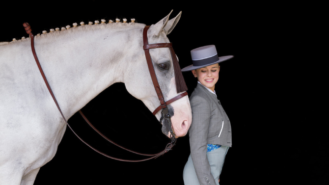 Le due giovani amazzoni, Nicole e Anastasia, insieme a Spooks Gotta Diamond ed Emperador, ricordano quanto l’adrenalinica monta western e l’elegante Doma Vaquera siano la stessa espressione di due differenti modi di vivere il cavallo e la natura. Gli eleganti esemplari arabi sono i soggetti dello scatto con Angelo, storico allevatore veronese, e il suo Jasmine Z.