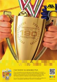 Come recita l'headline della campagna, 'I tuoi fornitori raccomandano Fila', le credenziali non mancano: sono più di 190, infatti, i partner che affiancano Fila nello sviluppo del proprio business. Di carattere istituzionale, il nuovo soggetto, che si rivolge a rivenditori e applicatori, celebra i plus dell'azienda attraverso un visual ricco di elementi, dalla coppa alle medaglie, emblematici di un meritato successo e di un riconoscimento che crea un significativo valore aggiunto sia al fornitore che all'utilizzatore.
