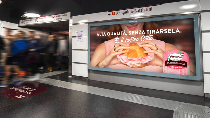 E’ una ricca pianificazione di OOH near to store e lungo le arterie di Roma e nelle metro A e B lungo gli assi che portano ai punti vendita, per incrementare anche la connessione con l'attività retail, la strategia di lancio del nuovo Cotto di Qualità di Fiorucci salumi. On air dall’11 al 24 settembre, la campagna è concentrata sulla città di Roma, ‘patria’ del brand, storico e noto produttore del Centro-sud.