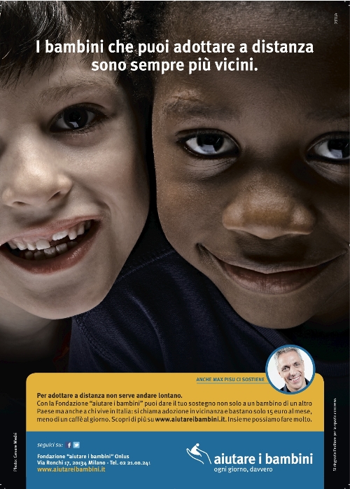 La voce narrante dello spot è quella di Max Pisu, “amico” della Fondazione “aiutare i bambini”, che compare poi nella parte finale dello spot oltre che nell’annuncio stampa, nel comunicato radio e nei materiali di supporto all’evento “Giornate delle adozioni a distanza e in vicinanza” organizzato a inizio giugno sul territorio grazie alla collaborazione con Prénatal.