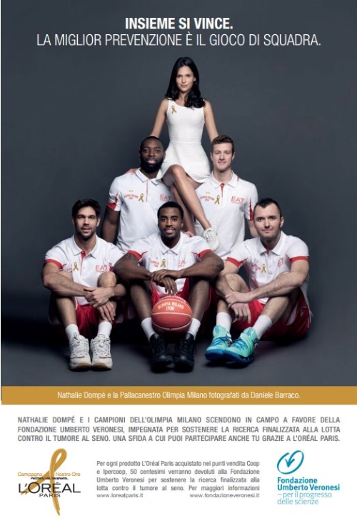 Concretamente, per ogni prodotto L’Oréal Paris acquistato nei punti vendita Ipercoop dal 28 aprile all’11 maggio e nei punti vendita Supercoop dal 19 maggio al 1 giugno, 0,50€ verranno devoluti alla Fondazione Umberto Veronesi per sostenere la ricerca scientifica contro il tumore al seno. Ancora una volta tutti i protagonisti hanno prestato la propria immagine con estrema generosità, e a titolo gratuito.