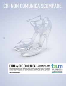 Il visual rafforza il messaggio utilizzando come soggetti un paio di calzature ed un’ automobile, prodotti-simbolo del Made in Italy, rappresentati in trasparenza proprio per evidenziare il pericolo d’ invisibilità corso dalle aziende che non comunicano in maniera adeguata. La campagna ruota quindi attorno ad una delle caratteristiche peculiari della società contemporanea: la necessità di comunicare per esistere.