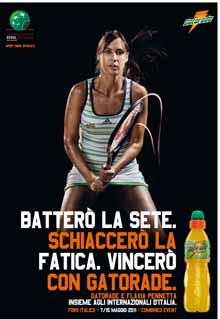 Già sponsor della campionessa italiana Flavia Pennetta, è Sport Drink ufficiale della manifestazione tennistica in corso in questi giorni al Foro Italico. La tennista, numero uno al mondo del ranking mondiale di doppio WTA con la compagna Gisela Dulko, è la protagonista della campagna stampa pianificata dal 7 al 16 maggio sulle pagine di “Gazzetta dello Sport” (e sulla home page della sezione tennis di Gazzetta.it) e dei clip video, “on air” su SKY SPORT per tutta la durata del torneo.