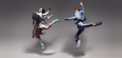 I modelli che hanno posato per la campagna, ballerini nella vita vera, sono Maria e Cameron McMillian, immortalati mentre saltano e rimangono sospesi in aria avvolti dai loro abiti fluttuanti.
