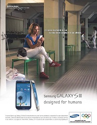 Samsung annuncia la nuova campagna stampa dedicata al Galaxy S III, che vede protagonisti insieme al rivoluzionario smartphone gli atleti olimpici italiani. A partire dal mesedi luglio gli scatti approderanno su tutte le principali testate nazionali, per raccontare momenti della vita sportiva di ogni singolo atleta insieme allo smartphone ufficiale dei Giochi Olimpici di Londra 2012.