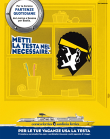 Corsica e Sardinia Ferries, compagnia specializzata nel settore del trasporto marittimo passeggeri, torna a comunicare le sue offerte di viaggio verso le due isole del Tirreno insieme a Go Up Communication.Per promuovere le principali tratte di collegamento, da Livorno, Civitavecchia e Savona per Corsica e Sardegna, la campagna 2011 punta a rafforzare il patto tra l’azienda e il suo consumatore e lo fa in maniera ironica: “Il Moro”, marchio storico del brand, diventa il key visual ufficiale, protagonista assoluto che entra nella quotidianità del consumer assicurando la tranquillità e la perfetta riuscita delle sue vacanze.