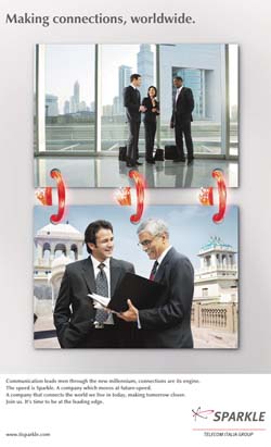 Abbattere i confini. Velocizzare le connessioni. Unire di fatto le persone e i luoghi più diversi. Questi sono i concetti trasformati da Grey Milano in una campagna mondiale multisoggetto per Telecom Italia Sparkle.Il team creativo ha usato gli strumenti della semplicità e dell’eleganza per far emergere e brillare i 12 soggetti che raccontano il mondo di Telecom Italia Sparkle. Un mondo dove il business diventa glocal e le distanze vengono azzerate grazie ad una tecnologia che elimina qualsiasi ostacolo.