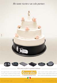Guardini, importante azienda italiana attiva negli stampi da forno, torna in comunicazione con una campagna istituzionale pianificata a partire da ottobre sulle riviste di cucina. La comunicazione, curata da In Adv, sintetizza i valori che da oltre 60 anni contraddistinguono il marchio: qualità made in Italy, specializzazione, tecnologia, creatività e passione. Una solitaria e sorridente sposina di zucchero in cima a una torta nuziale realizzata all’interno di uno stampo dell’azienda piemontese e una headline ammiccante sottolineano che Guardini è più di un alleato in cucina: è un partner irrinunciabile, capace di valorizzare la fantasia di chi ama cucinare offrendo la certezza di un risultato perfetto.