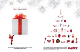 E’ partita la campagna stampa natalizia di Guzzini che ha scelto lo studio Iabadabadu di Fano per reinterpretare in chiave attuale e ironica due icone del Natale: Babbo Natale e l’albero di Natale. Al primo è affidato il compito di scegliere tra una vasta offerta il regalo giusto, il secondo diventa un’originale vetrina che mostra l'ampia gamma di collezioni del nuovo catalogo Guzzini.