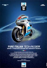 I colori istituzionali dell’azienda, blu e azzurro, campeggiano nel visual grafico in cui è disegnato un circuito motociclistico, da cui si avvicina la moto Came. Nella profondità e nel movimento dell’immagine si fa appello all’elemento più emozionale e coinvolgente della sfida raccolta da Came: un invito al lettore a farsi partecipe e a condividere l’entusiasmo della competizione. La campagna è apparsa sulle principali testate quotidiane nazionali a partire da marzo.
