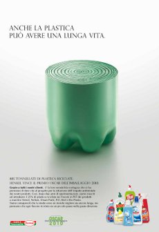 L’agenzia guidata dal CEO Daniele Peccerillo firma la nuova campagna stampa per Henkel che celebra la vittoria del prestigioso premio Oscar dell’Imballaggio 2010. Dal 2009 la divisione detergenti Henkel si è impegnata in un importante progetto per il recupero e la riconversione degli imballaggi, riuscendo ad introdurre il 25% di plastica riciclata nei flaconi in PET dei prodotti a marchio Vernel, Nelsen, Dixan Piatti, Bref, Pril e Bio Presto. Partendo da un dato numerico importante, 885 tonnellate di plastica riciclate, è nato il concetto alla base della campagna: riciclare una bottiglia di plastica significa farla vivere più a lungo. Il visual traduce questa idea con una metafora visiva semplice e di impatto.