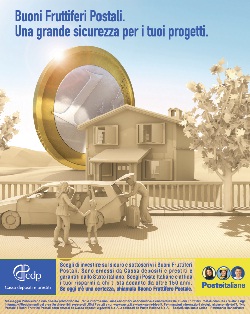 Poste Italiane è attualmente on air con la campagna Buoni Fruttiferi Postali firmata da Young & Rubicam Group Roma. La campagna mostra una grande moneta, simbolo del risparmio, che rotola lentamente dentro un paese fatto di carta. Al suo passaggio, il mondo intorno si anima, materializzando e rendendo reali i progetti delle persone: una casa, un'attività, la serenità familiare. La dimensione della moneta trasmette un senso di sicurezza e di protezione verso i risparmi.