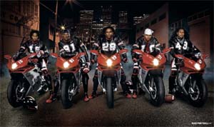 L'importante azienda del panorama motociclistico italiano è stata scelta da Nike come partner per la nuova campagna pubblicitaria dedicata ai campioni della lega dei professionisti del football americano. In posa Steve Breaston degli Arizona Cardinals, Calvin Johnson dei Detroit Lions, Chris Johnson dei Tennessee Titans, Desean Jackson dei Philadelphia Eagles e Troy Polamalu dei Pitssburgh Steelers.