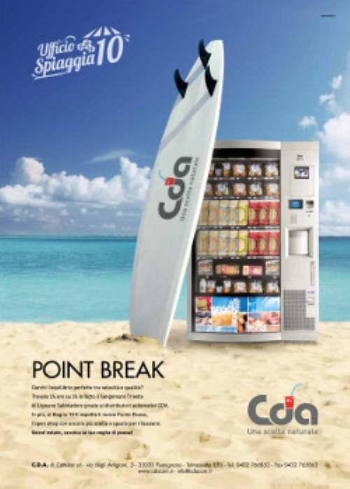 Recità così la body della nuova campagna stampa estate sui punti di ristoro automatici in spiaggia della friulana CDA, tra i principali player italiani del vending, che si è affidata nuovamente alla creatività dell'agenzia Emporio ADV di Enrico Accettola per comunicare quei valori di affidabilità ed esperienza che la annoverano tra le aziende più importanti di settore del nordest.