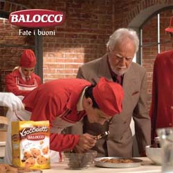Sullo schermo, Pastefrolle, Ciambelle, Gocciolotti e Cruschelle prendono forma nell’ormai familiare fabbrica d’altri tempi, scrigno di tradizione e qualità. Il tono della campagna, divertente e surreale, vede il 'Signor Balocco' che controlla attentamente l’operato dei suoi collaboratori e con dedizione e affetto saluta i suoi frollini con l’invito: 'Fate i buoni!'.