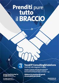 tutte le attività di adv, è alla sua prima edizione e sarà dedicato alle tecnologie della Travel Industry: per chi non potesse essere presente, sarà possibile seguirlo anche in streaming sul sito de Il Sole 24 ore. Amadeus, innovatore del mercato dei viaggi nel cambiamento delle dinamiche contemporanee del business presenta un evento in cui Travel Experience, Cost Reduction e Making Profits si integrano perfettamente. L'approccio strategico di Iaki è partito da qui, per raccontare la capacità di Amadeus di dare una mano per rispondere a qualunque richiesta: dalla più grande alla più piccola, facendosi sempre vicino alle esigenze dei suoi clienti. Questa strategia si articola attraverso un media mix definito da Amadeus sui mezzi del Gruppo Sole24Ore: website, stampa quotidiana e campagna radiofonica. In particolare, l'annuncio stampa ruota attorno al key visual di due mani che si stringono, e una headline che recita 'Prenditi pure tutto il braccio', proprio per raccontare la ricchezza di risorse e la totale flessibilità che Amadeus sa offrire ai suoi clienti.