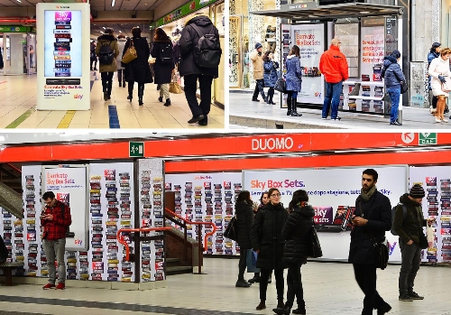 Nella Station Domination Duomo la banchina è stata completamente rivestita con i titoli delle serie Tv di Sky Box Sets, creando per gli appassionati di serie TV un ambiente di coinvolgimento totale. La stazione è stata anche utilizzata come location per le riprese di una puntata di Atlantic Confidential , il programma di Sky Atlantic dedicato alle serie TV.