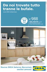 affissione dinamica e radio con l’ironia che contraddistingue da sempre l’azienda svedese e giocando in maniera intelligente e simpatica con la cultura locale.Per Ikea hanno diretto i lavori Chiara Nalin, External Communication Manager IKEA Italia e Alessandra Giombini, National Advertising Responsible. La comunicazione è stata ideata dall’art Paolo Perrone e dal copy Danilo Tarquinio, autore anche della campagna radio con il copy Riccardo Di Capua, la supervisione è del copy Mario Esposito e dell’art Massimo Verrone, la direzione creativa esecutiva di Roberto Battaglia e Pino Rozzi.