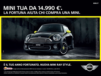 La pianificazione prevede ooh, radio, web e tv per comunicare che avere MINI a condizioni così favorevoli in termini di prezzo e offerta finanziaria è una grande fortuna che capita solo quest’anno. Il soggetto tv, che ha nella cover della famosa canzone di Kylie Minogue "I should be so lucky" un elemento di forte distintività, è stato utilizzato su più piattaforme di comunicazione: tv affinity, pianificazione nei circuiti delle stazioni ferroviarie, oltre che declinazione videobanner.
