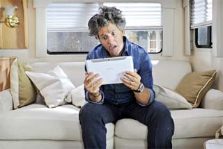 si trova su un divano all’interno di un camper allestito come camerino, in attesa di girare il nuovo spot Infostrada. Lo showman è quasi irriconoscibile rispetto allo smagliante 50enne della precedente campagna: è ora vestito in modo trasandato, con la barba lunga e i capelli spettinati.