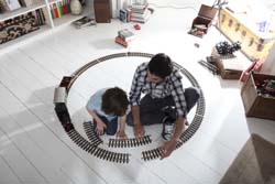 Nel primo spot, onda dall'8 maggio, persone ritratte nella vita quotidiana mentre tracciano un cerchio attorno a sè: una ginnasta con il suo nastro, un padre che costruisce un trenino con il figlio, un agricoltore che ara un campo, due ragazzi in un prato.