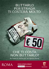 La campagna del Comune di Roma, articolata in sei soggetti su stampa e affissione, sensibilizza e non buttare i rifiuti per strada. La creatività è stata ideata da Maurizio Minerva (art ) e Eliana Frosali (copy), con la direzione creativa di Agostino Toscana e Alessandro Orlandi.