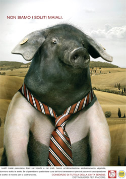 E’ on-line all’indirizzo www.cintasenese.org, il teaser promosso dal Consorzio di Tutela della Cinta Senese, una delle ultime eccellenze italiane, in ordine temporale, ad avere ottenuto il riconoscimento DOP della Comunità Europea.Testimonial, già comparso all’ultima edizione del Cibus nel ruolo di Verdi su vecchie 1.000 lire distribuite all’interno della fiera, un maiale in cravatta ritratto su un quadro a olio in uno scorcio di campagna toscana. Obiettivo principale della comunicazione è quello di incuriosire ed invitare il consumatore a scoprire la differenza tra i suini allevati dal consorzio e gli altri.