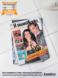 Ironia, provocazione, forza, sono i termini che più si addicono alla nuova campagna abbonamenti per il 2011 che The Name firma per il Manifesto. Il giornale ha deciso di puntare su una campagna di grande impatto, per ovviare ai tagli ai finanziamenti pubblici all’editoria, che stanno obbligando la testata a una vera lotta per la sopravvivenza.'Non costringeteci a farlo. Abbonatevi al Manifesto' recita il claim, accanto a un Manifesto trasformato in un qualunque giornale di gossip. In prima pagina