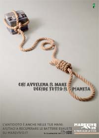Declinata sui mezzi tv, stampa ed affissione, la campagna sottolinea la connessione tra il destino del mare e quello dell'uomo. Una connessione così stretta che buttare in acqua una batteria esausta equivale a un vero e proprio suicidio. Infatti, come recita il claim, 'Chi avvelena il mare, uccide tutto il pianeta'.