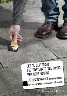 Una campagna all-media incentrata sulla "persona più fortunata del mondo" realizzata dalla sede romana dell'agenzia per il Ministero per i beni artistici e culturali.