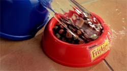 Maldestro e allegro, il simpatico cane Billy giocando per casa urta la sua ciotola, versando l’acqua nel contenitore delle sue deliziose crocchette Friskies. Nessun problema! Con l’aggiunta di un po’ d’acqua, in pochi secondi, le crocchette diventano irresistibili bocconcini in salsa.