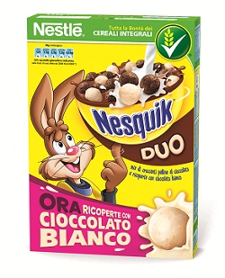 I Cereali Nesquik raddoppiano e rinnovano la ricetta di Nesquik Duo: un nuovo mix dove il gusto unico di Nesquik incontra la bontà del cioccolato bianco. Per inaugurare la stagione primaverile, i cereali approdano on air con una campagna adv dedicata.Fino al 2 maggio Nesquik Duo è in onda con una campagna tv & video on demand che porta il famoso e amato Quicky nei piccoli schermi di tutti gli italiani. Un divertente spot di 10” racconta la novità dei Cereali Nesquik Duo e mostra la magia dell’incontro tra l’irresistibile gusto dei classici cereali e la coinvolgente golosità del cioccolato bianco.