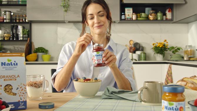 Il nuovo spot Natù porta confetture, granole e porridge senza zuccheri aggiunti sulle tv digitali