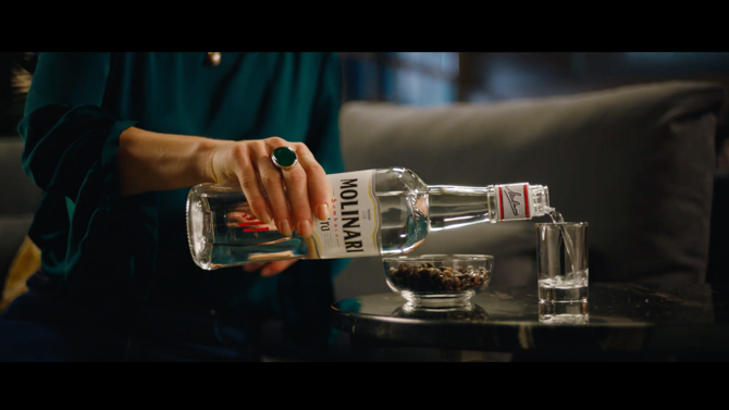 Ed è proprio il rito della Molinari con la mosca, nato nei bar della Dolce Vita romana e forse il più famoso e amato di tutti i tempi, ad essere protagonista dello spot da 15” ideato dalla creative community KleinRusso. L’eleganza con cui i chicchi di caffè cadono nel bicchiere tuffandosi nella Sambuca e il contrasto inaspettato tra l’aroma dolce della Molinari e l’amaro del chicco di caffè tostato rendono il suo consumo un’esperienza unica, dandogli al tempo stesso un tocco glamour.