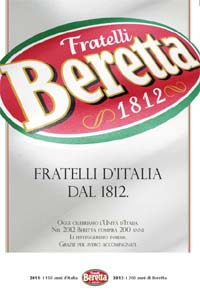 Il visual della campagna è una comunicazione istituzionale di grande impatto che, nella grafica e nei colori, sottolinea il forte legame che da sempre l’azienda ha con il nostro paese. Un legame nato nel 1812, quando a Barzanò, nel cuore della Brianza, il Gruppo Beretta nasce come salumificio artigianale.