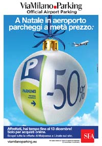 Il servizio SEA che gestisce i parcheggi degli aeroporti di Milano Malpensa e Milano Linate, anche a Natale offre ai viaggiatori importanti e competitivi vantaggi che vengono presentati nella campagna on air dal 4 novembre. I media selezionati sono principalmenteaffissione statica e dinamica, circuito LCD, radio, banner web. Hanno lavorato al progetto Roberto Pace (art) e Artur Caracciolo (copy), sotto la direzione creativa di Aldo Cernuto e Roberto Pizzigoni.