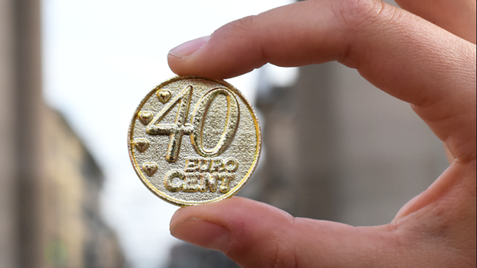 In occasione del World Creativity and Innovation Day, centinaia di monete finte da 40 centesimi sono state