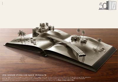 Il concept presenta un mondo interamente fatto di acciaio, dove un libro fatto dello steso materiale racconta idealmente tutti i successi e le grandi opere realizzate da Ilva. La campagna valorizza dunque alcune di questi grandi costruzioni: The Storebaelts bridge, che collega le due principali isole della Danimarca, uno dei ponti a campata unica più lunghi del mondo; i tubi per gli oleodotti che portano l’energia nelle nostre case e nelle nostre aziende; la struttura dell’aeroporto di Malpensa; e il pianale su cui è costruita un’automobile simbolo dell’italianità come la Fiat 500. ‘Made in Italy, made in Ilva’ recita il pay off.