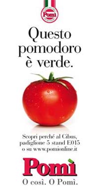 Questi alcuni dei temi 'green' all’origine della nuova campagna pubblicitaria, sintetizzati con un linguaggio essenziale e impattante. Temi che verranno presentati e approfonditi da Pomì proprio in occasione del Cibus, con l’obiettivo di comunicare i risultati ottenuti, ma soprattutto di porre l’attenzione sull’impegno dell’azienda per il futuro.