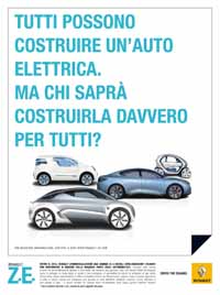 A pochi giorni dalla presentazione al Salone dell’Auto di Francoforte di quatto concept-car anteprima della futura gamma elettrica, prende il via una campagna pubblicitaria su stampa e internet che illustra le quattro concept-car firmate Renault Z.E., e comunica l’impegno della casa automobilistica per le zero emissioni.