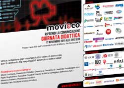 Professionisti della comunicazione guidano i giovani registi in un confronto sulle tecniche e i linguaggi che rendono efficace il messaggio audiovisivo durante l’unica proiezione di tutti i video in concorso a movi&co. 2011. Domani, 17 novembre all’Università IULM, nell’Aula 502 si terrà la Giornata Didattica organizzata da movi&co. il concorso per giovani registi under 35, i cui lavori saranno presentati in anteprima durante l’incontro.